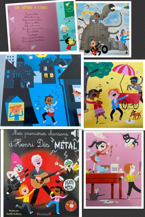 Les illustrations joyeuses d’Aurélie Guillerey viennent enrichir cet album très rock, plein d’humour et d’entrain.