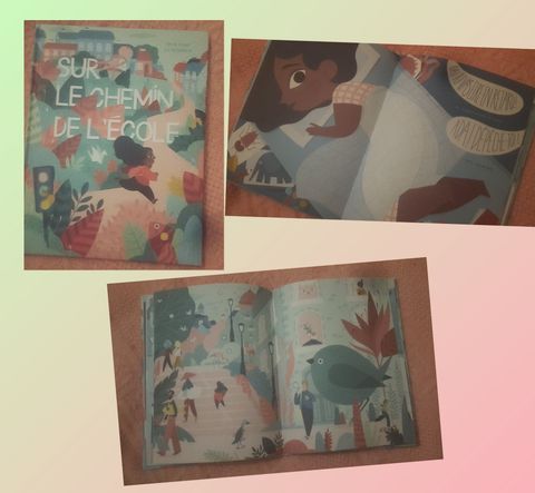 Sur le trottoir pour aller à l'école, elle s'imagine voler dans les airs... tout est plus beau dans ses yeux d'enfant.